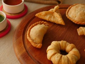 Filling rakh ker pani laga lein aur side ko fold ker ka press ker lein aur edges ko twist ker lein.