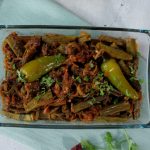 Now add fried okra,green chilli,fresh coriander,cover and cook on low flame for 7-8 minutes.