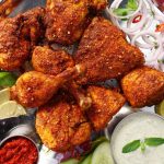 -Bowl mein dahi,adrak lehsan paste,zarda ka rang,cornflour,tayyar spice mix (reserve 1 & ½ tbs for later use),soy sauce,chilli sauce aur lemon juice dal ker ache tarhan mix ker lein.