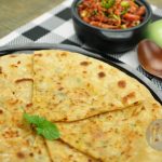 Heat griddle and place rolled paratha on it, fry from both sides with ghee.