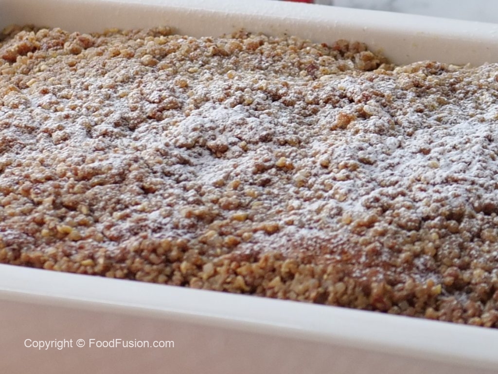 Crumb topping dal ker evenly pheela lein aur gently press karein.