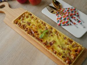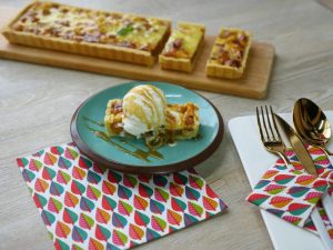On baking tray/dish,add caramelize apples and spread evenly.