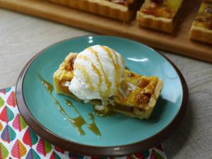 Serve with ice cream & caramel syrup.