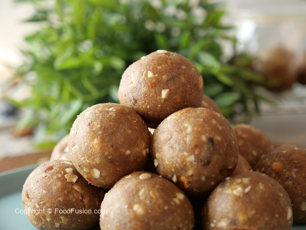 -Grease hands with ghee,take a small quantity of mixture & make laddu of equal sizes (makes 16-18).