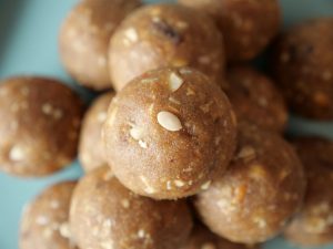 -Both roasted flour & dates mixture should be warm so that they bind together easily.