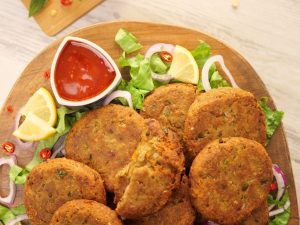 -Grease hands with oil,take a mixture (60g) & make kababs of equal sizes (makes 20-22).