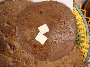 -Serve bajre ki roti with white butter,hari mirch mong phali chutney!