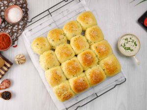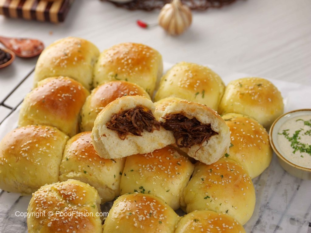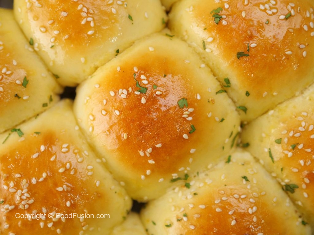 -Stuffed buns par brush karein aur til chirak dein (makes 16).