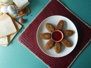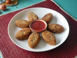Grease hands with oil,take a mixture (50g) and make cutlets of equal sizes & refrigerate for 15-20 minutes.