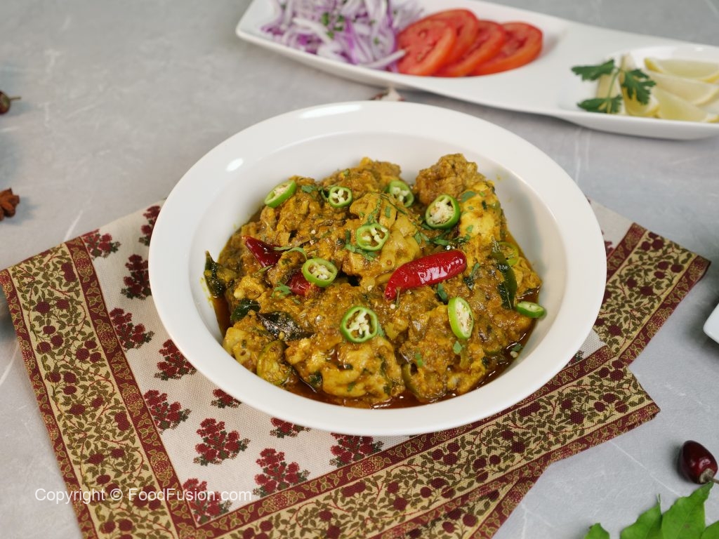 -Karahi mein cooking oil,sukhi lal mirch,curry patta aur tayyar masala dal ker ache tarhan mix karein aur halki ancch per oil alag ho janay tak paka lein (8-10 minutes).