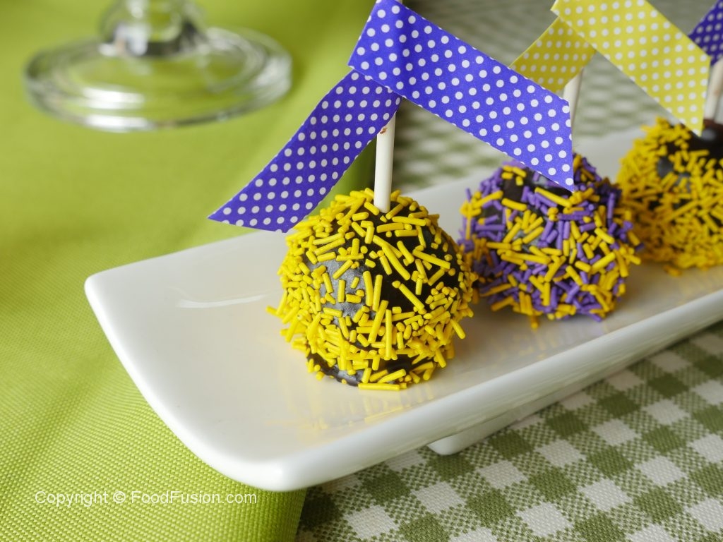 Ab cake pop sticks ko melted cooking chocolate mein dip karein aur foran cake pops mein laga lein aur 30 minutes kliya refrigerate ker lein.