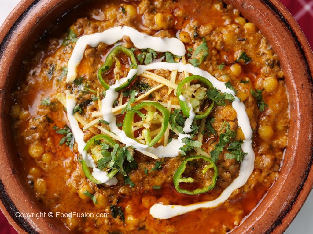-Add prepared chana daal qeema & garnish with fresh coriander,ginger,green chilli,cream & serve!