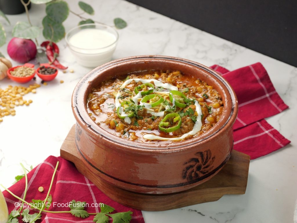 -Tayyar chana daal qeema dal dein,hara dhania,adrak,hari mirch aur cream dal ker serve karein!