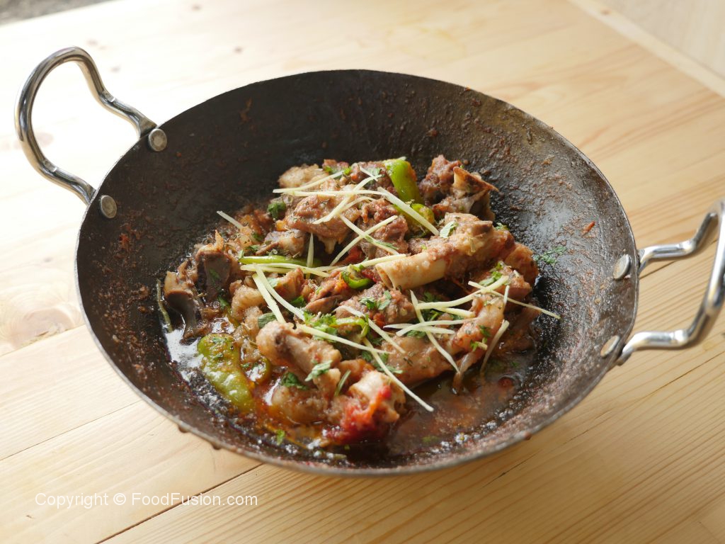 Karhai mein mutton with bones,fat aur namak dal dein.
