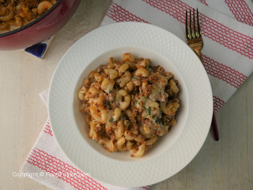 -Boiled elbow macaroni shamil karein aur mix ker lein.