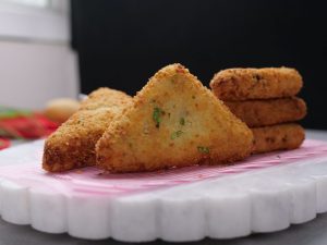 -Now coat in cornflour mixture & coat with breadcrumbs.