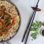 -Add boiled rice,black pepper powder,pink salt,white pepper powder,chicken powder,soy sauce,chilli sauce,vinegar,mix well & cook for a minute.