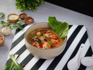 -Take chicken mixture (1 tbs) & add in broth,cover & cook on medium flame for 5-6 minutes (makes 10-12).