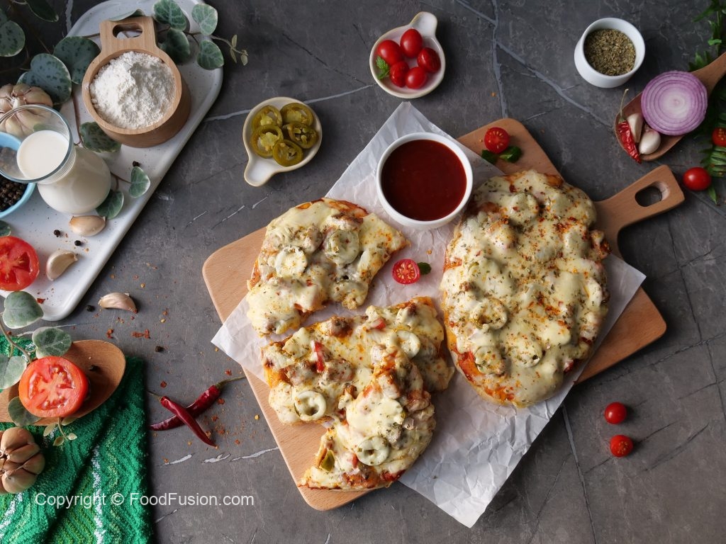 You are all up for a treat today. A finally a desi touch to pizza, Chicken Jalapeno Naan Pizza without oven without any fancy ingredients. #HappyCookingToYou #FoodFusion #PakolaFullCreamMilk