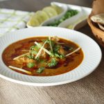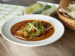 On serving plate,add nihari,tarri (chili oil),ginger,fresh coriander,lemon juice & serve.