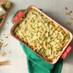 On oven safe casserole,add prepared mixture & spread evenly.