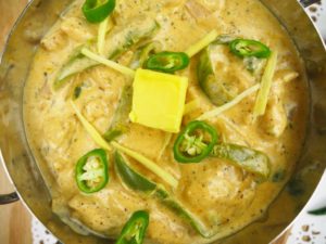 Adrak,hari mirch aur makhan sa garnish karein.