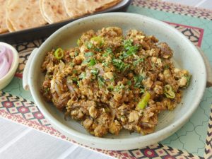 Chicken qeema shamil karein aur rang tabdeel hunay tak paka lein.