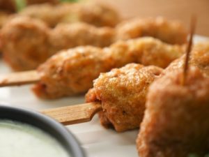 Thread chicken cubes into skewers or tooth pick.