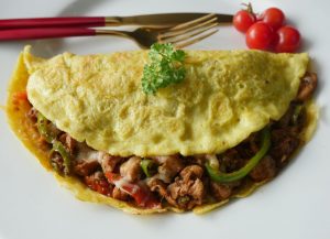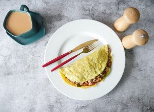 In frying pan,add cooking oil and egg mixture,cook on low flame for 2 minutes then flip and cook other side for a minute.