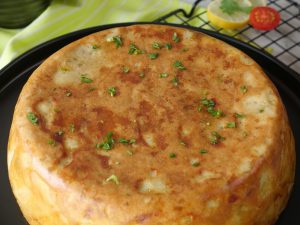 -Rubber spatula ki madad sa sides ko scrap karein aur flat plate per carefully flip ker lein & side per rakh dein.