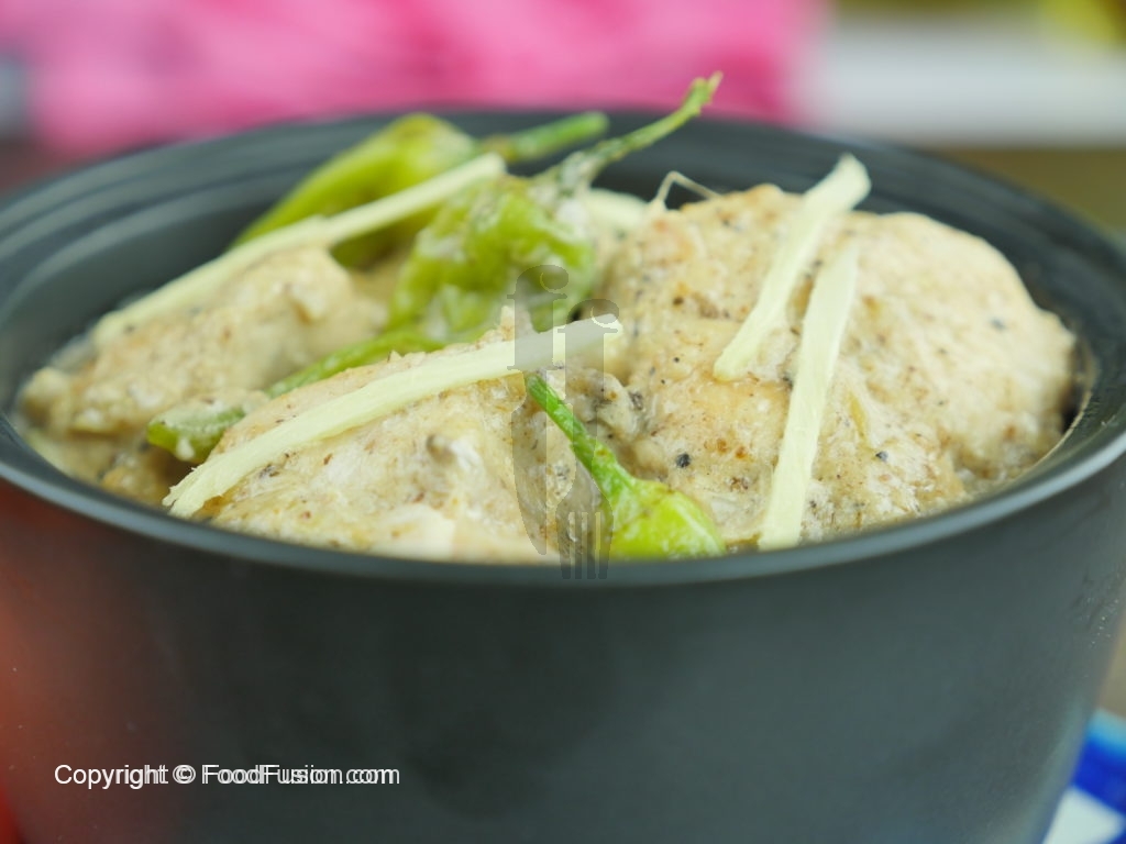 White chicken karahai tayyar hai aur isse roti, naan aur chapatti ke sath khaya ja sakta hai.