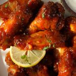 -In a bowl, add air fried chicken wings, pour some prepared chilli milli sauce, coat well.