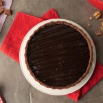 Pour prepared walnut salted caramel sauce over the tart,spread evenly & refrigerate for 30 minutes.
