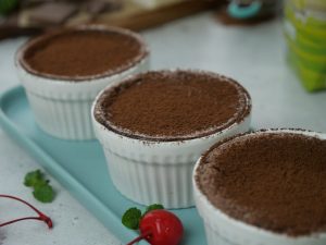 Place ramekins on a baking dish & bake in preheated oven at 200C for 15-16 minutes (makes 4).