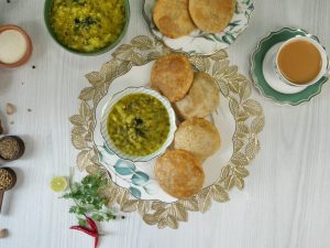 -In a wok,heat cooking oil (150-160°C) & fry kachori on medium low flame until golden brown (makes 14).