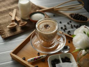 Add 2-3 tbs of prepared coffee base and whisk well until frothy.
