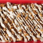 Tayyar cream sauce ko drizzle ker ka akhrot dal dein.