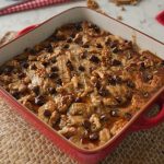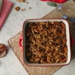 Pour prepared mixture in a greased baking dish (8 x 8 inch), spread evenly and sprinkle chocolate chips & walnuts.
