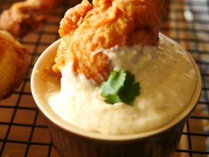 Crispy Drumsticks with Spicy Potato Sauce