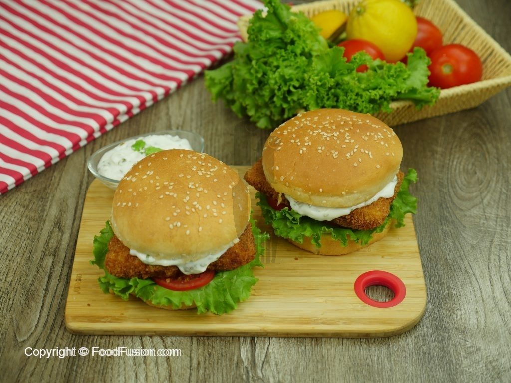 Make restaurant quality fish burger at home. Try our Crispy Fish burger recipe and have a fun time with family. #HappyCookingToYou