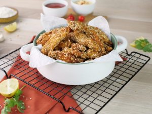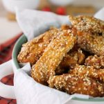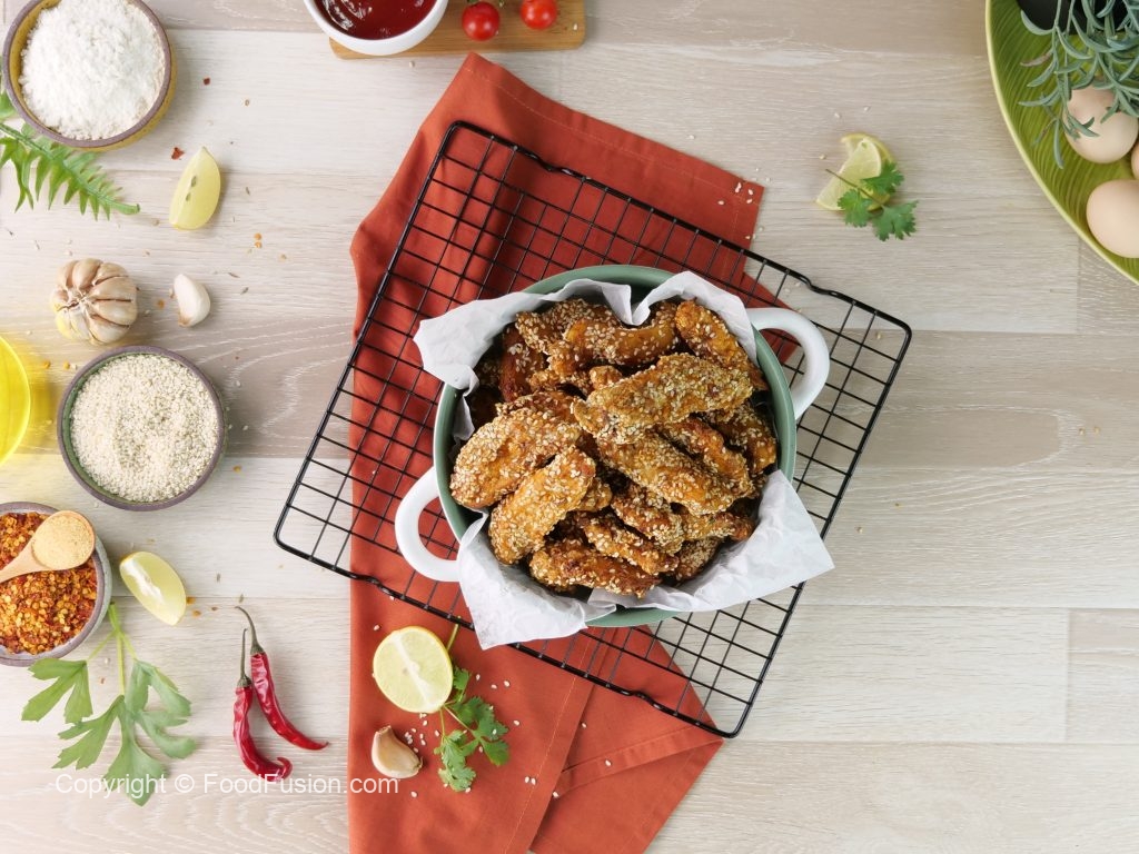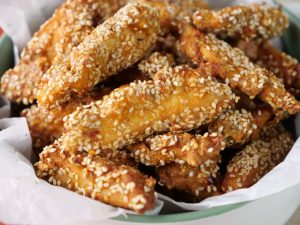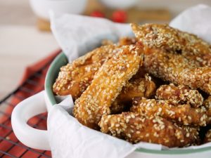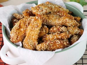 -On each chicken piece,sprinkle sesame seeds & place them in air fryer basket.