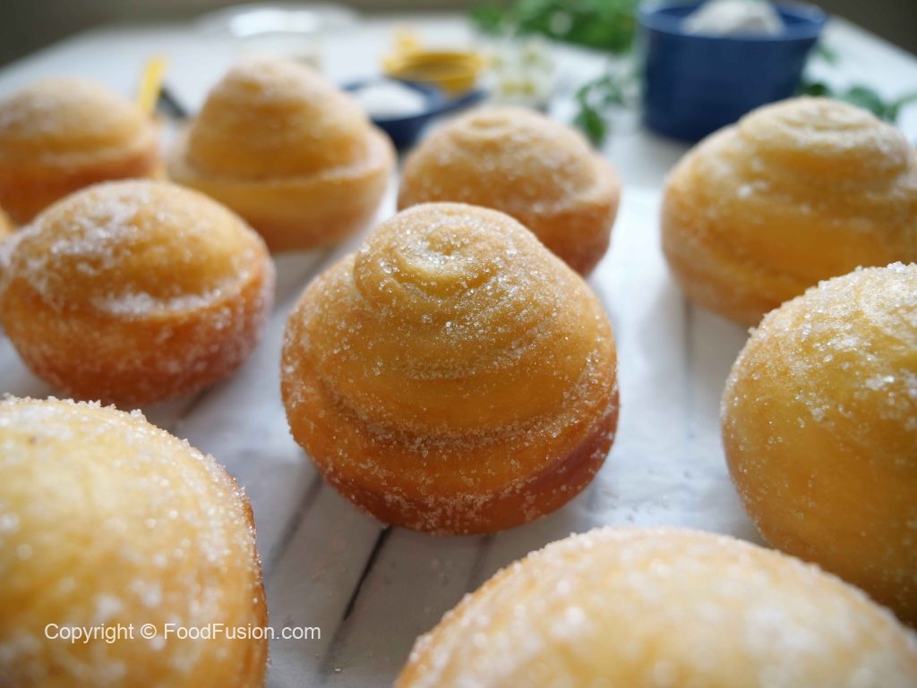 -In a wok,heat cooking oil (140°C) & fry on low flame until golden & coat properly from all sides with caster sugar (makes 12).