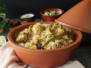 -Heat griddle,place cooking pot & heavy weight over the pot and steam cook on high flame for 4-5 minutes to build up the steam then lower the flame & steam cook for 40 minutes & serve!