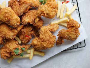 -Crispy fried wings ko fries & sauce ka saath serve karein!