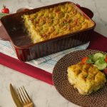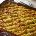 Sprinkle cheddar cheese, dried parsley & broil in preheated oven at 180 C for 25-30 minutes or until top turns golden.