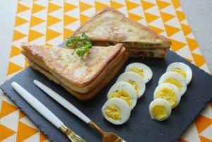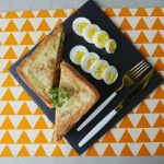 On bread slice,add & spread prepared chicken filling,top with another bread slice and press evenly with the help of the plate.