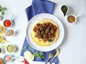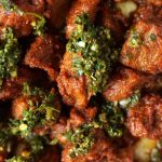 -In a serving dish,add mashed potato,chimichurri sauce,fry beef boti,chimichurri sauce,chaat masala & serve!
