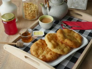In frying pan,add heat cooking oil and fry dough from both sides until golden brown.
