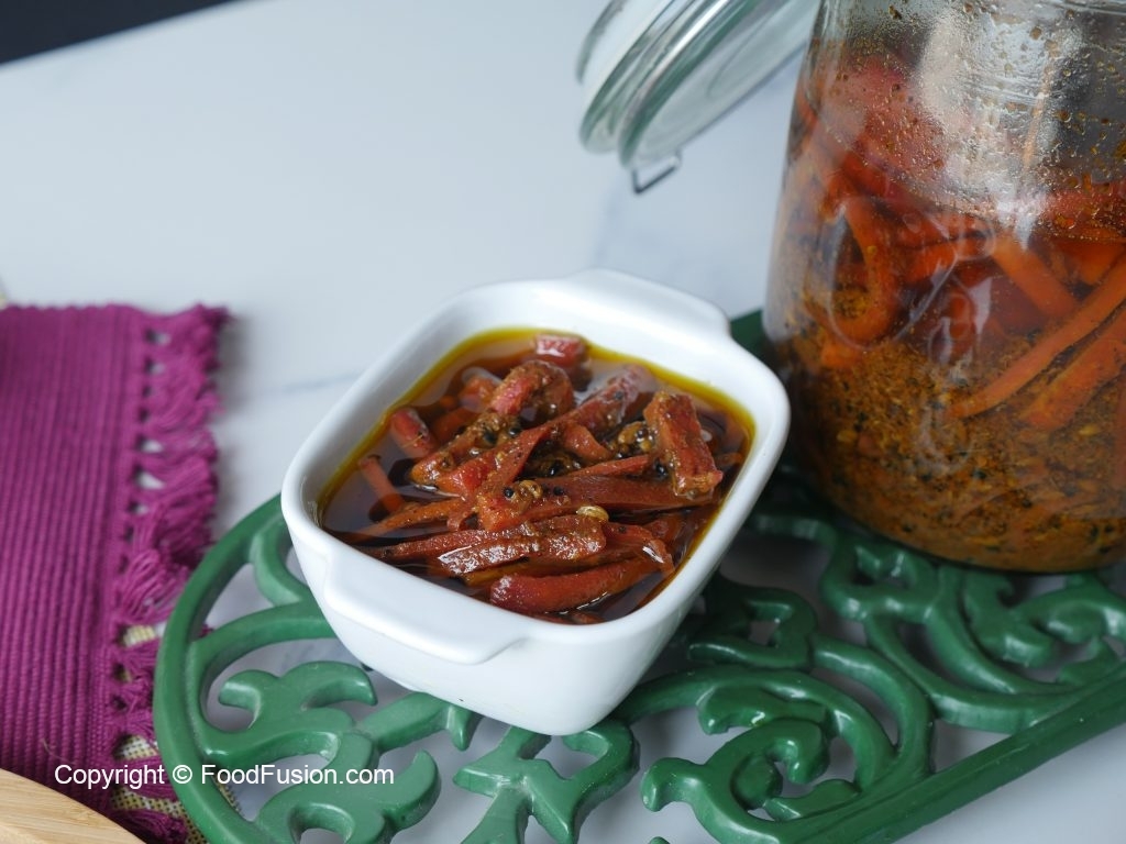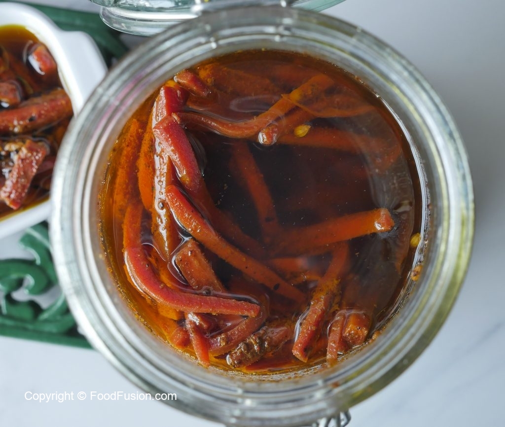 In dry & clean jar,carrot achar,cover tightly and shake well & keep it on counter for 2-3 days (warm place).
