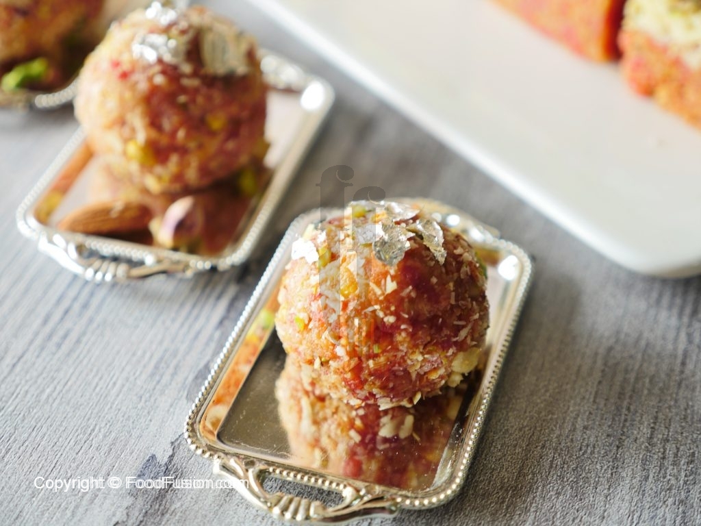 Ab cooked gajar ka mixture ko haath per pheela lein aur cooked khoa dal ker cover karein aur ball tayyar ker lein.